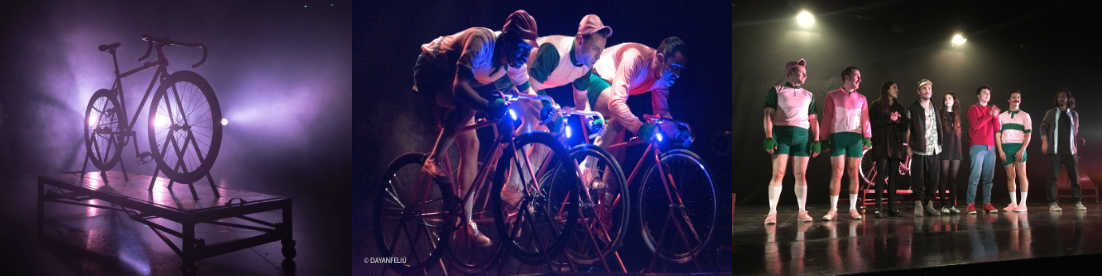 La puesta en espacio es una sutil coreografía siendo un logro que genera imágenes potentes, dando cuenta de las instancias dramáticas al cual están sometidos los deportistas en la ruda competencia. La iluminación es otro acierto que aporta un aura poético a los cuerpos exigidos por el constante pedaleo y esfuerzo sicológico en que se encuentran. La tensión narrativa sigue la estructura del circuito, armada entre la primera y segunda vuelta, en un constante rodar hacia la meta.
